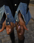 The perfect versatile blazer is here. This unique blazer features attached denim button up material. This modern reinterpretation of a classic blazer is constructed from high-quality denim that is both durable and stylish. Expert tailoring creates a sleek, structured silhouette perfect for layering, while contemporary detailing such as contrast stitching and subtle distressing adds urban edge. Whether paired with jeans for a double-denim look or layered over a casual dress, this blazer seamlessly transitions from office hours to evening outings, offering a bold blend of sophistication and streetwear cool.