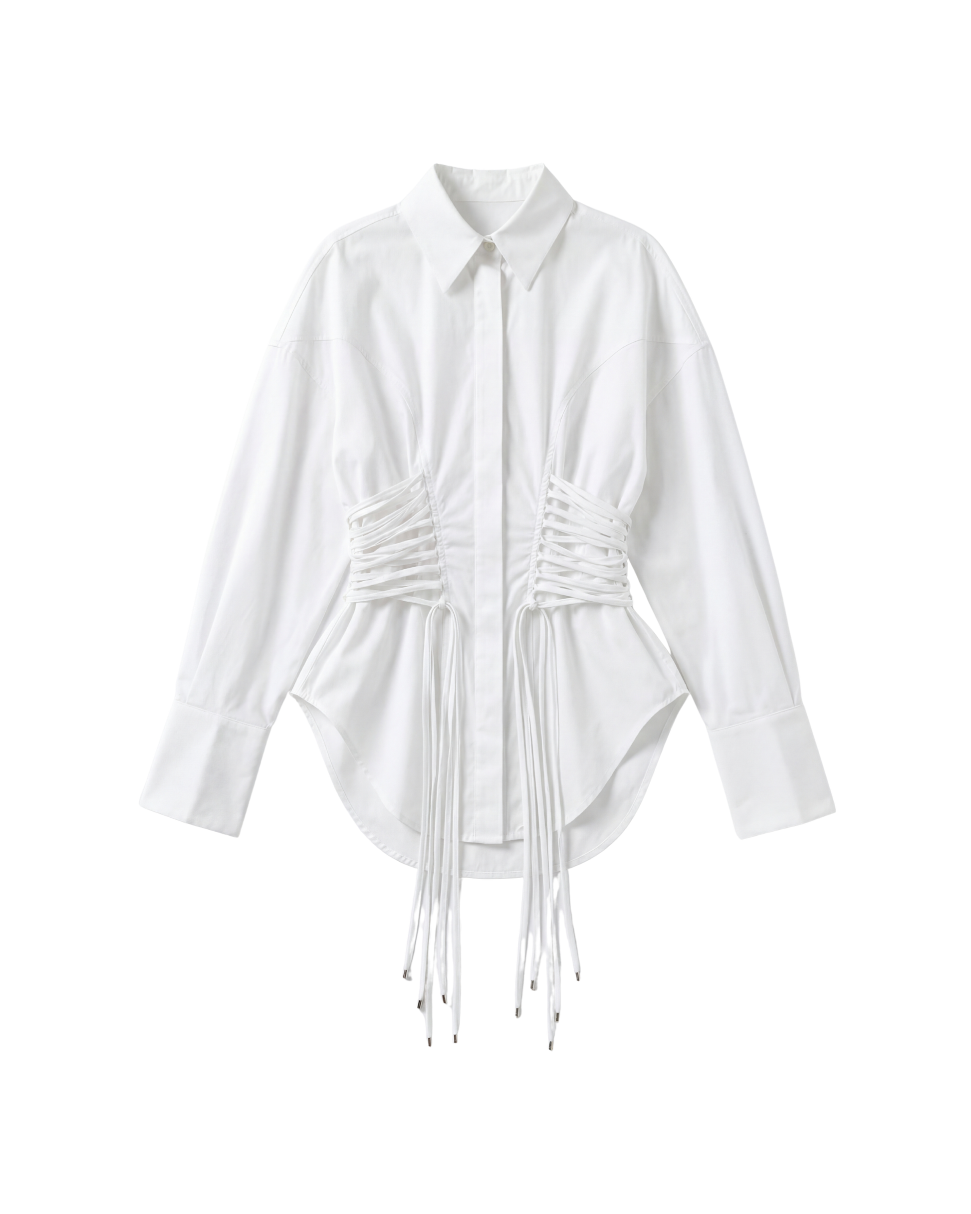 - Adjustable drawstring detailing allows you to transform the shirt from relaxed to sharply contoured.